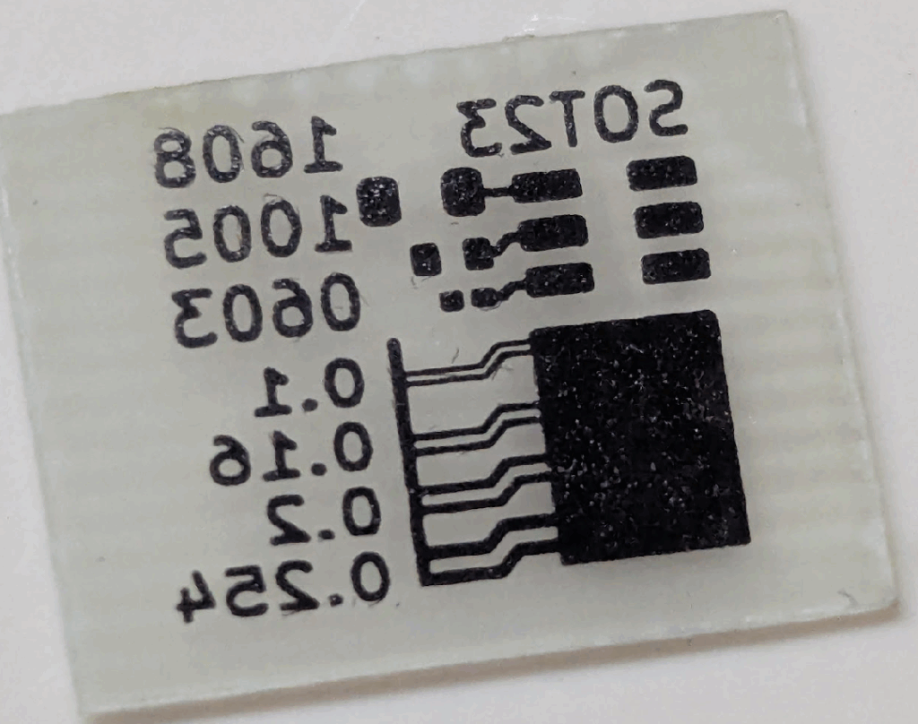 黒い毛みたいなのは、エッチングで端っこの土台が削られてはがれたトナー部分。(ちょっとやりすぎた?)